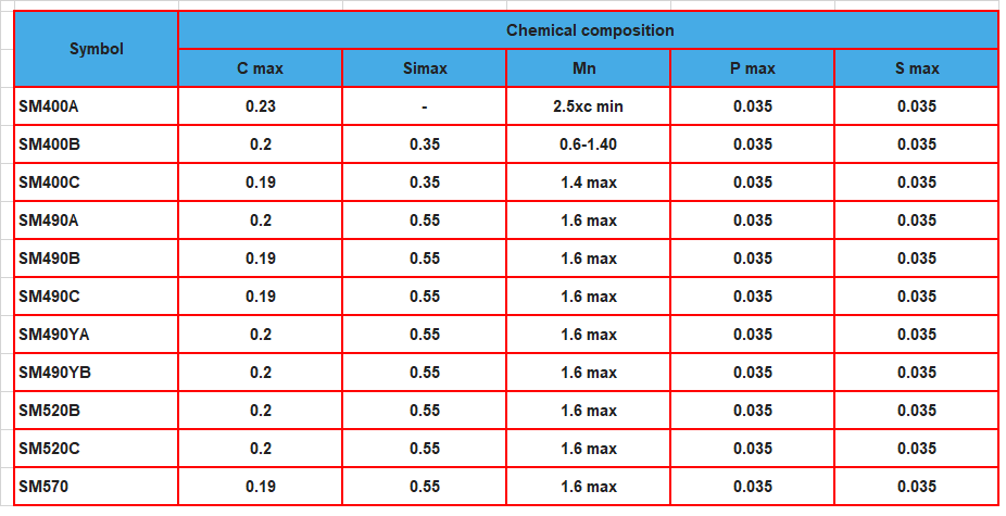 Thành phần hóa học mác thép SM400A SM400B SM400C SM490A SM490B SM490C SM490YA SM490YB SM520BTác giảAdministrator08:36 - 10/05/2023Chia sẻ: